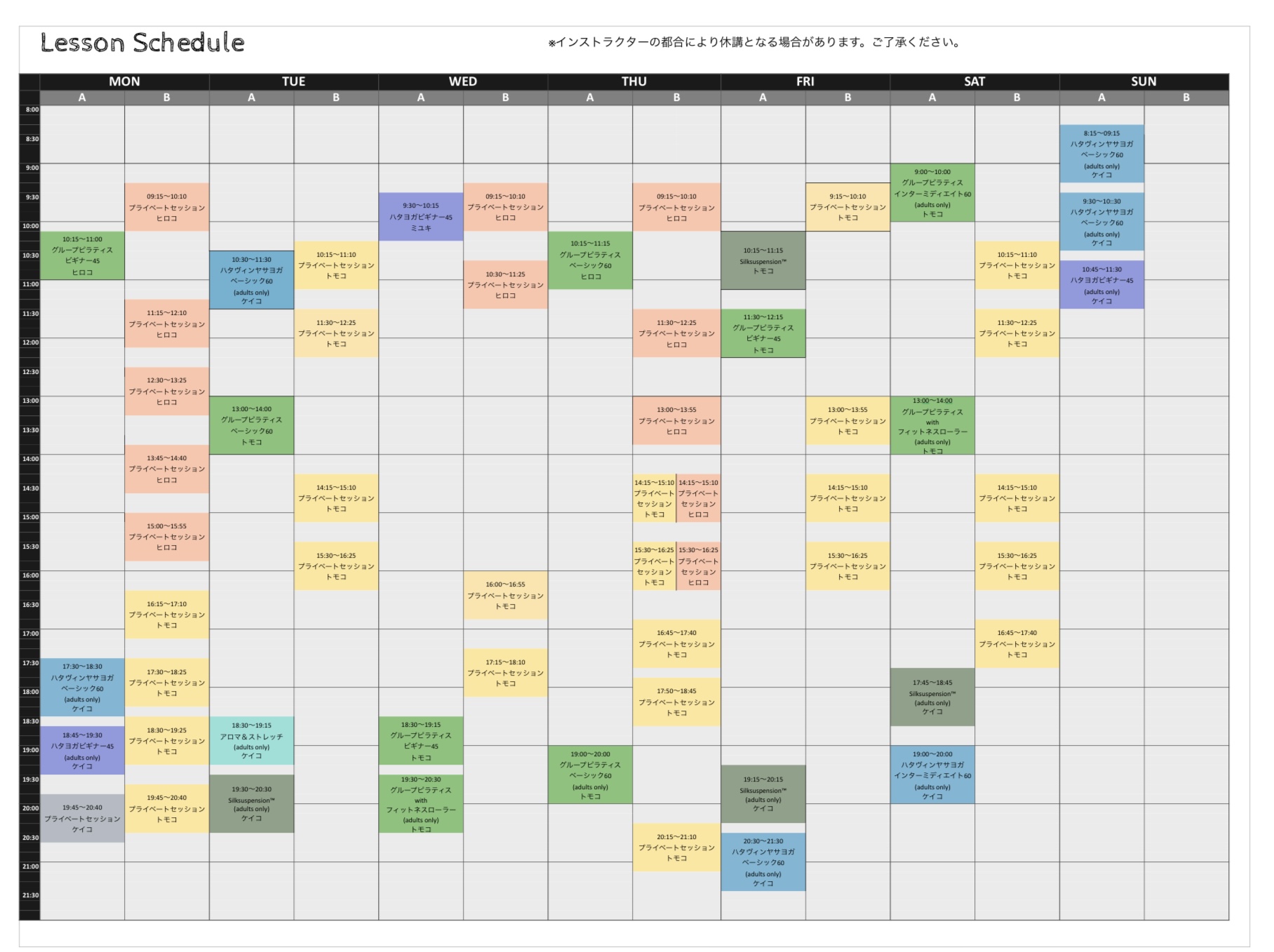 ↓スケジュールをご確認のうえご予約ください。