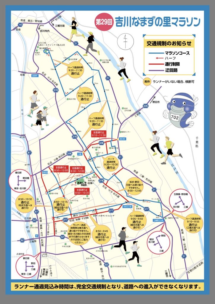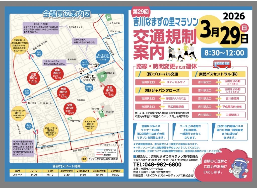 3/29(日)吉川なまずの里マラソンの開催に伴い、